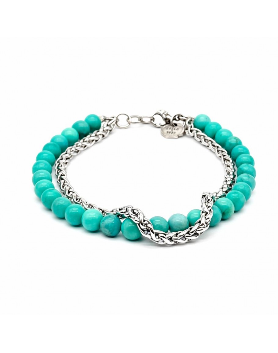 BRACCIALE AULITE VERDE .Particolare la catena intrecciata in Acciaio, insieme alle pietre di AULITE VERDE ,Creano un Effetto Delicato Luminoso indossato al Polso