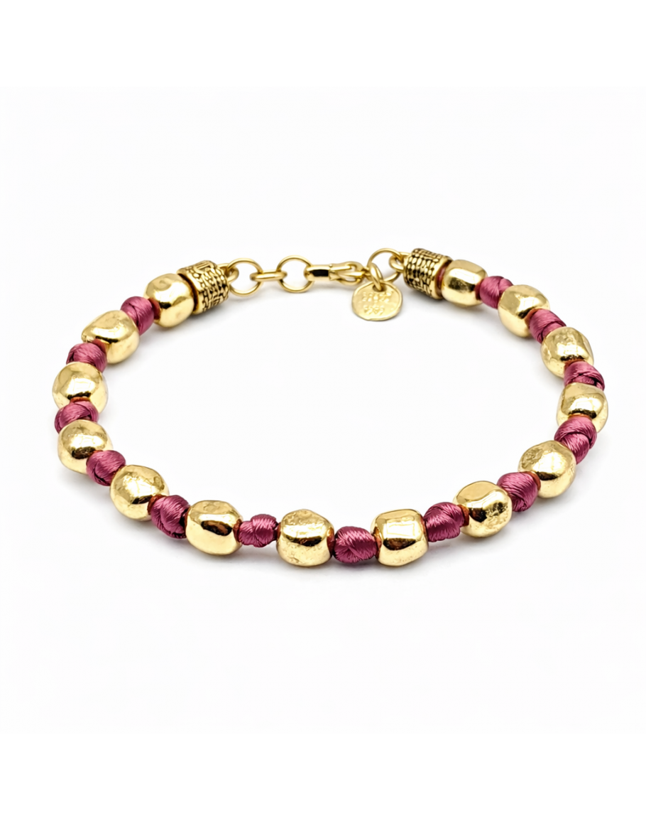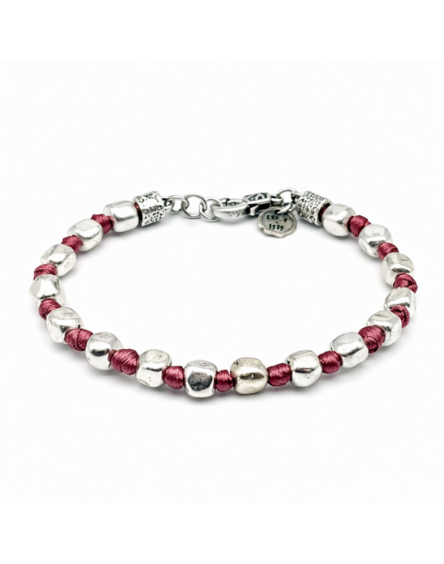 BRACCIALE PEPITE ARGENTO FILO SETA ROSA