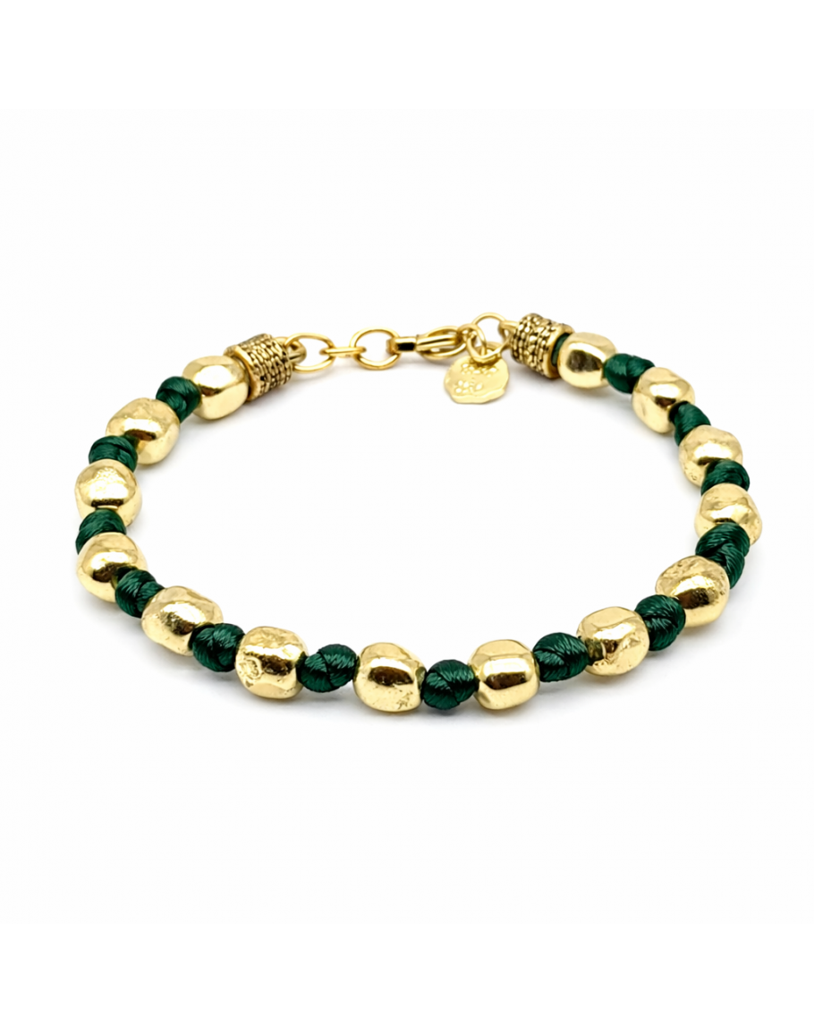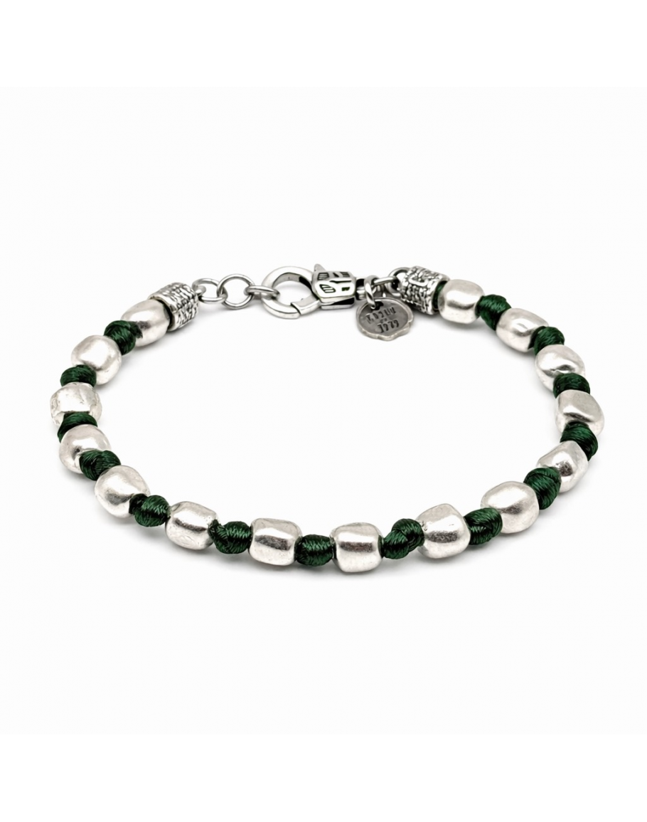 BRACCIALE PEPITE ARGENTO FILO SETA VERDONE