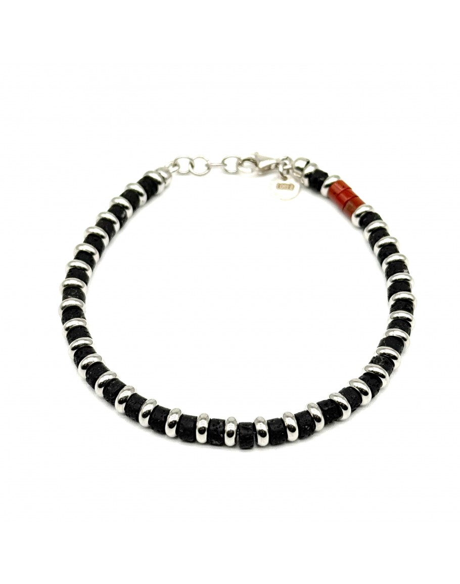 Bracciale Pietre Lavica e Corallo con dischetti