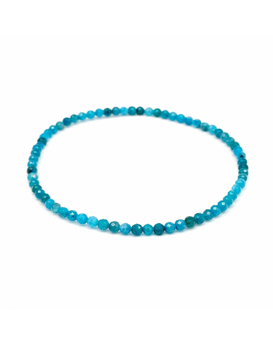 Cavigliera elastica con pietre di apatite blu, Raffinata e luminosa, questa cavigliera in apatite blu è realizzata con perline sfaccettate dal colore azzurro, che catturano la luce con riflessi intensi e sofisticati. Un dettaglio discreto ma di grande carattere, perfetto per valorizzare la caviglia con stile.