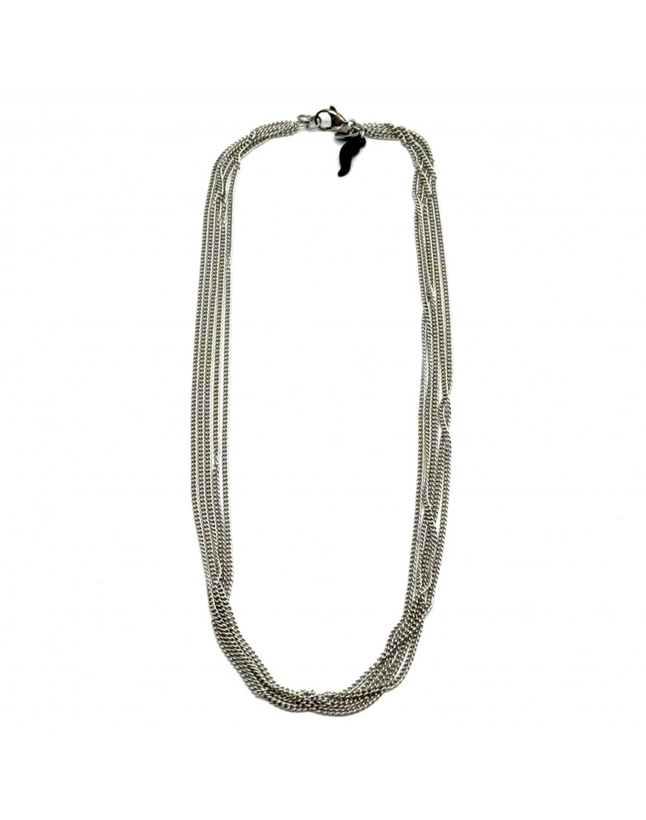 Collana Cinque Fili in acciaio ,morbida ed avvolgente indossata al collo.
