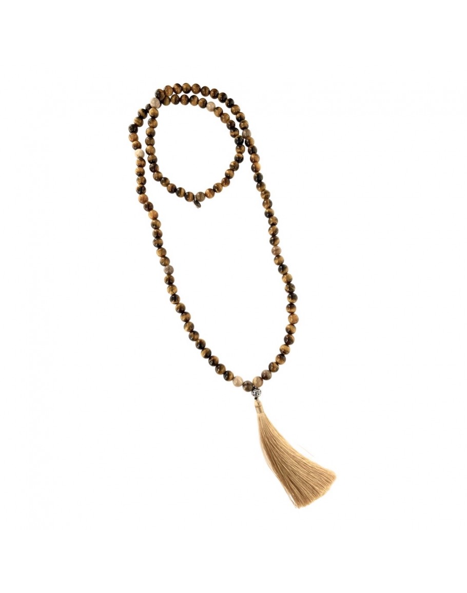 Collana Mala Un filo di Occhio Di Tigre , creano la Collana MALA ,da indossate da portare sempre con noi , in ogni momento della nostra giornata, cosi da sentirci sempre al sicuro, impreziosito da un pendente Nappina