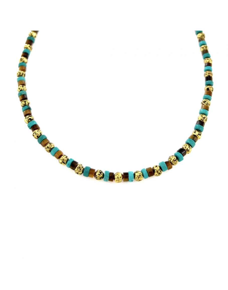 COLLANA OCCHIO DI TIGRE, TURCHESE, PIETRA LAVICA ORO