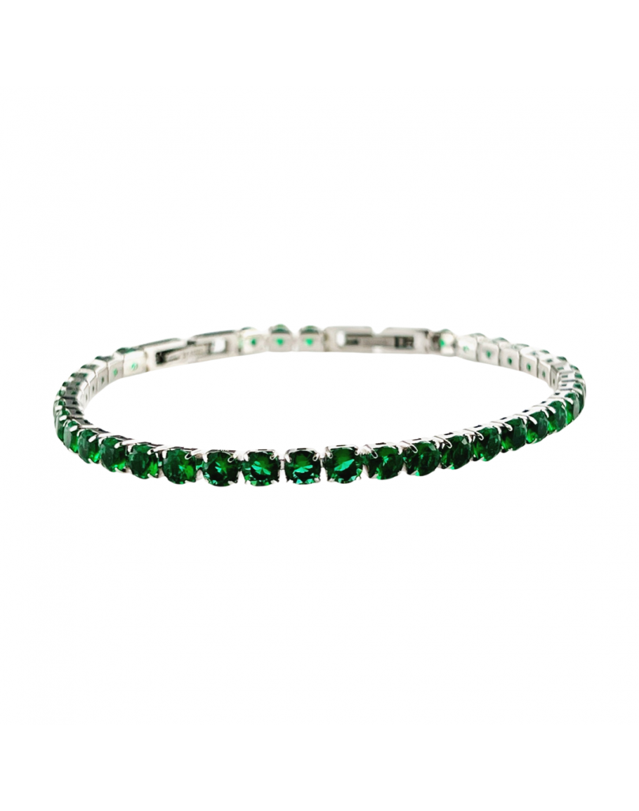 TENNIS-ARMBAND aus Stahl mit grünen Zirkonen, ein zeitloses, raffiniertes und elegantes Juwel, das perfekte Accessoire, um einen Hauch von Stil zu verleihen.