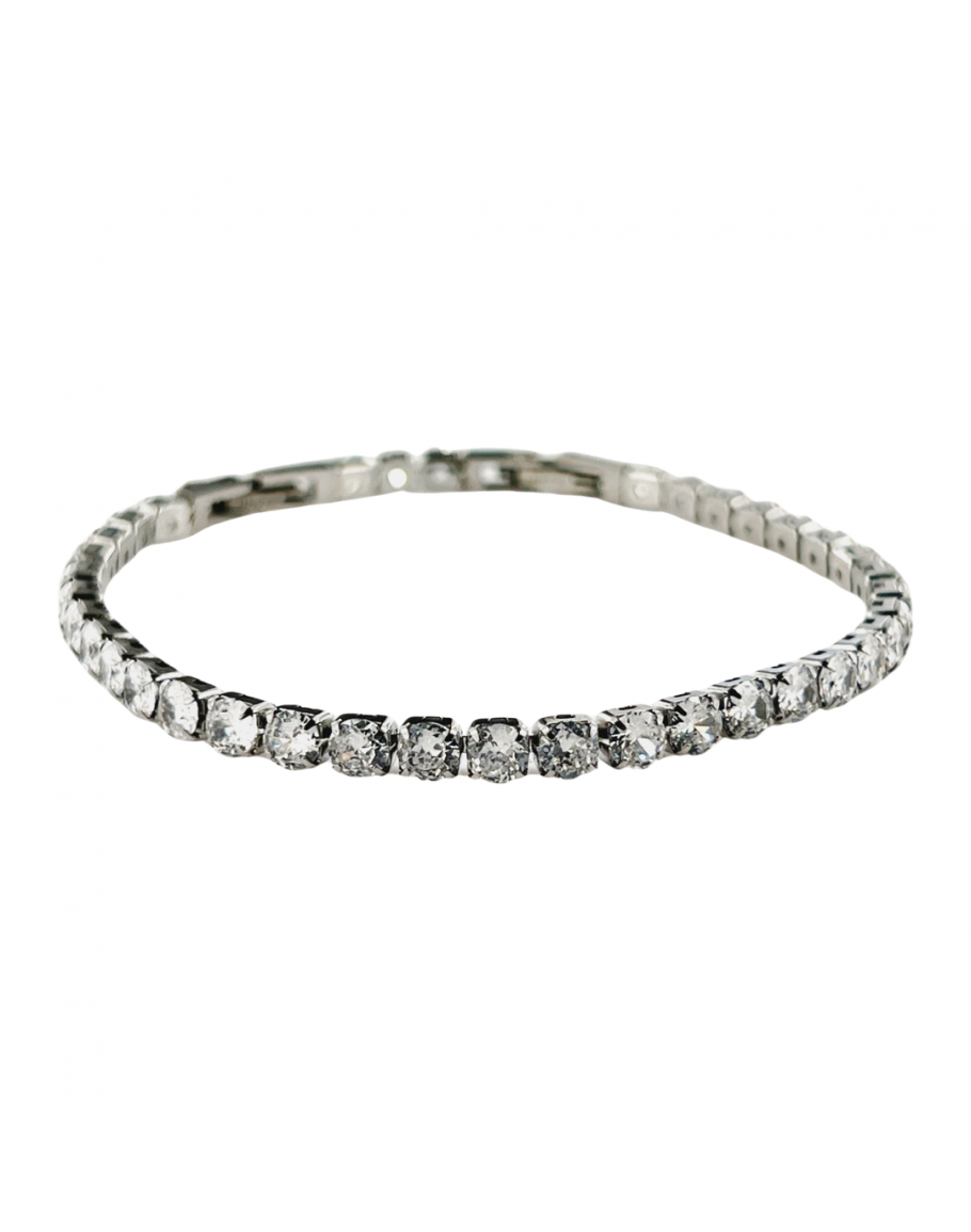 TENNIS-ARMBAND aus Stahl mit weißen Zirkonen, ein zeitloses, raffiniertes und elegantes Schmuckstück, das perfekte Accessoire, um einen Hauch von Stil zu verleihen.