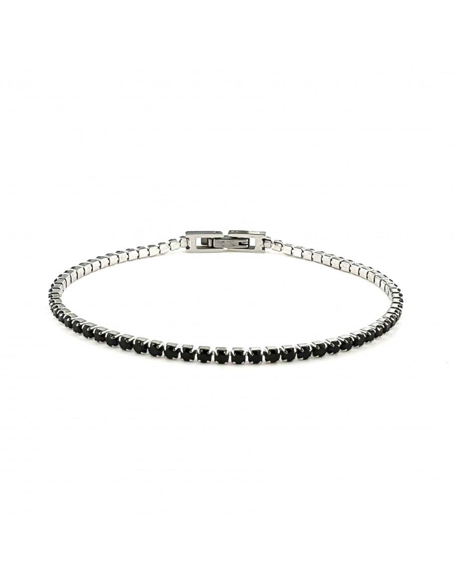 TENNIS-ARMBAND aus Stahl mit schwarzen Zirkonen, ein zeitloses, raffiniertes und elegantes Schmuckstück, das perfekte Accessoire, um einen Hauch von Stil zu verleihen.
