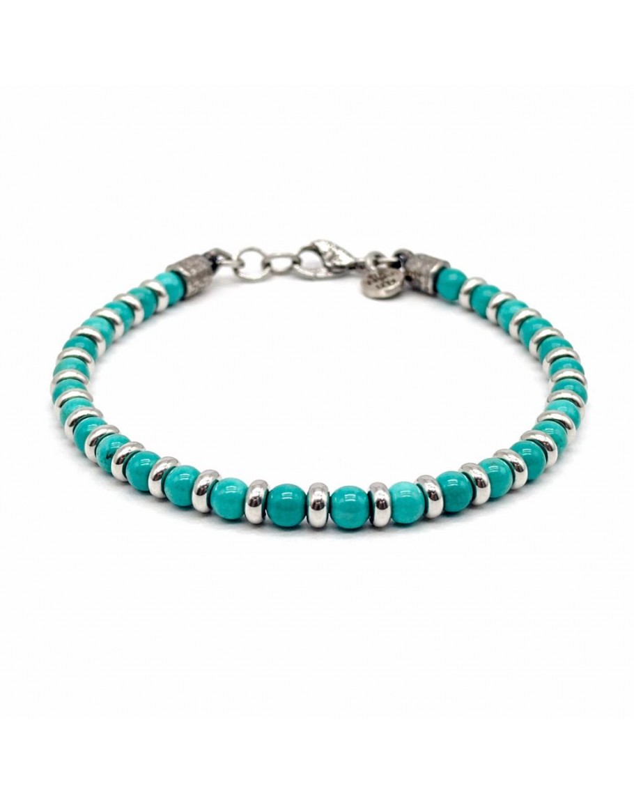 GREEN AULITE STONE BRACELET with DISTANCES. Made with careful handcrafted research, with GREEN AULITE STONE, Known for its Properties of giving peace and balance, improves the mood, and drives away negative influences, alternating with steel spacers , a color contrast Wrapping .Researched Corlu'1979 Closure held by two Bushes Crafted . Beautiful to wear at any time of our Day