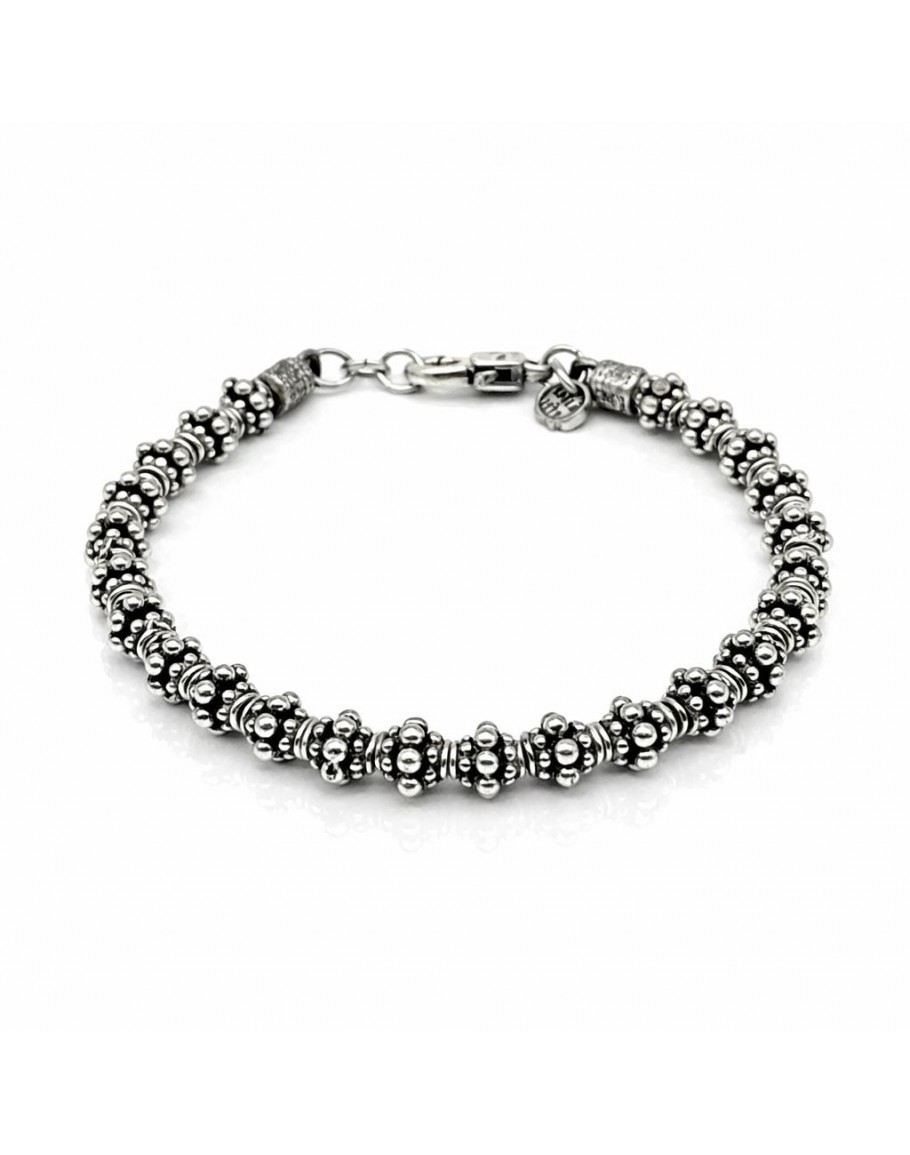 BRACELET WITH DOTTED THROUGH ELEMENTS A succession of dotted elements, handcrafted with careful goldsmith skill, create an original, stylish bracelet to wear in all moments of our day.