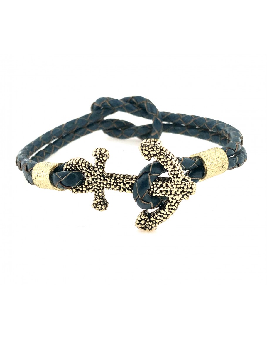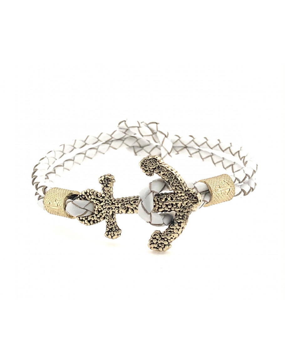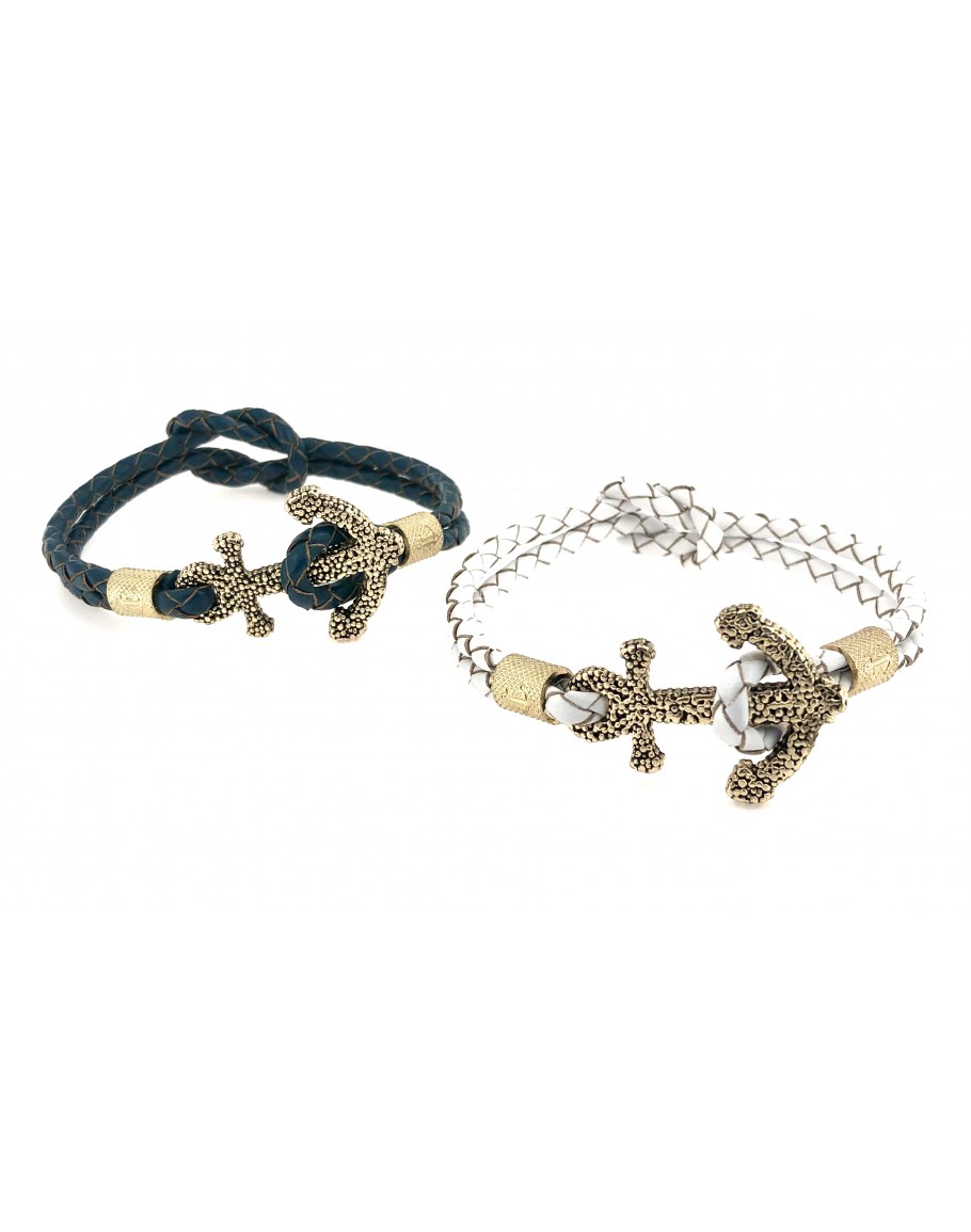 Bracelets with Studded Anchor and Braided Leather... for "HIM and HER" Braided leather thread with "KNOT", Great aesthetic refinement of the Loop / "ANCORA" clasp from CORLU 1979 Finely Worked Bushes