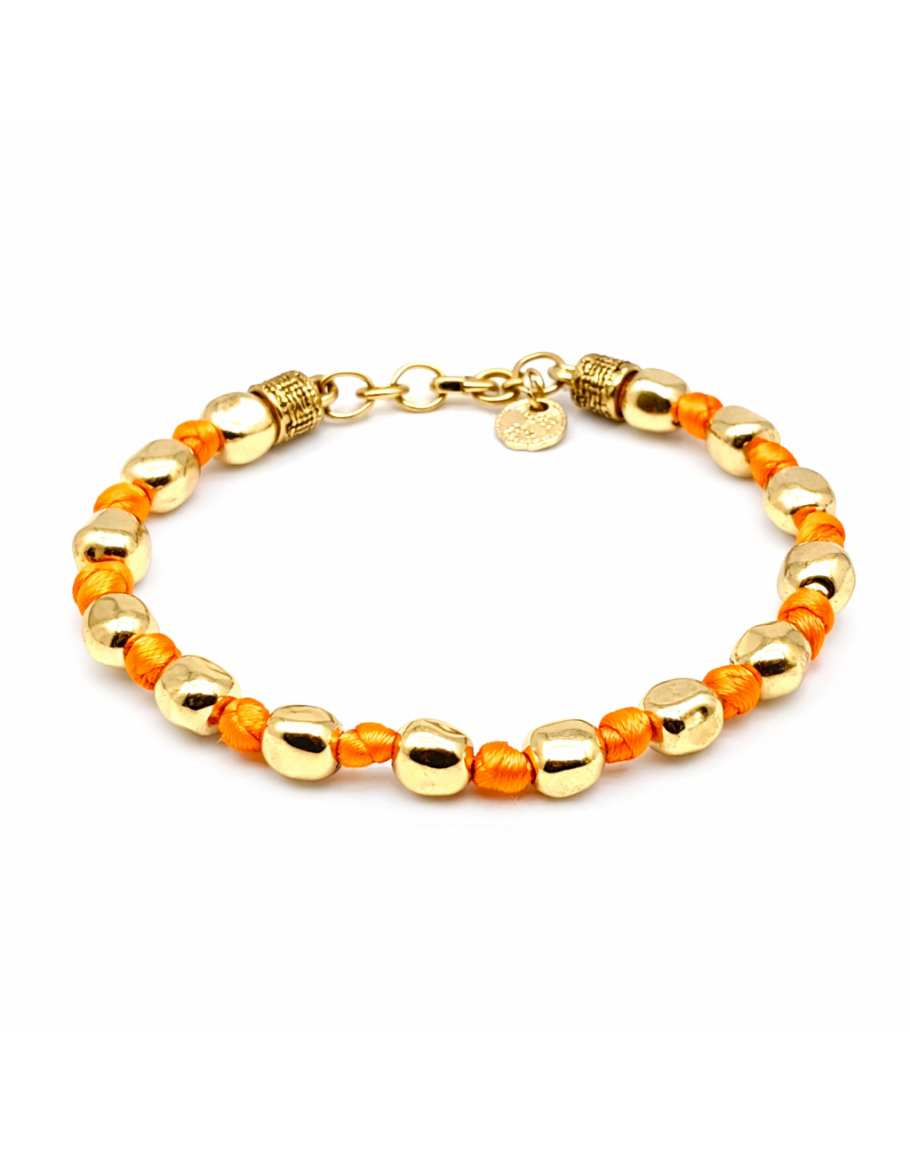 SILVER PEPITE BRACELET SILK THREAD Orange
