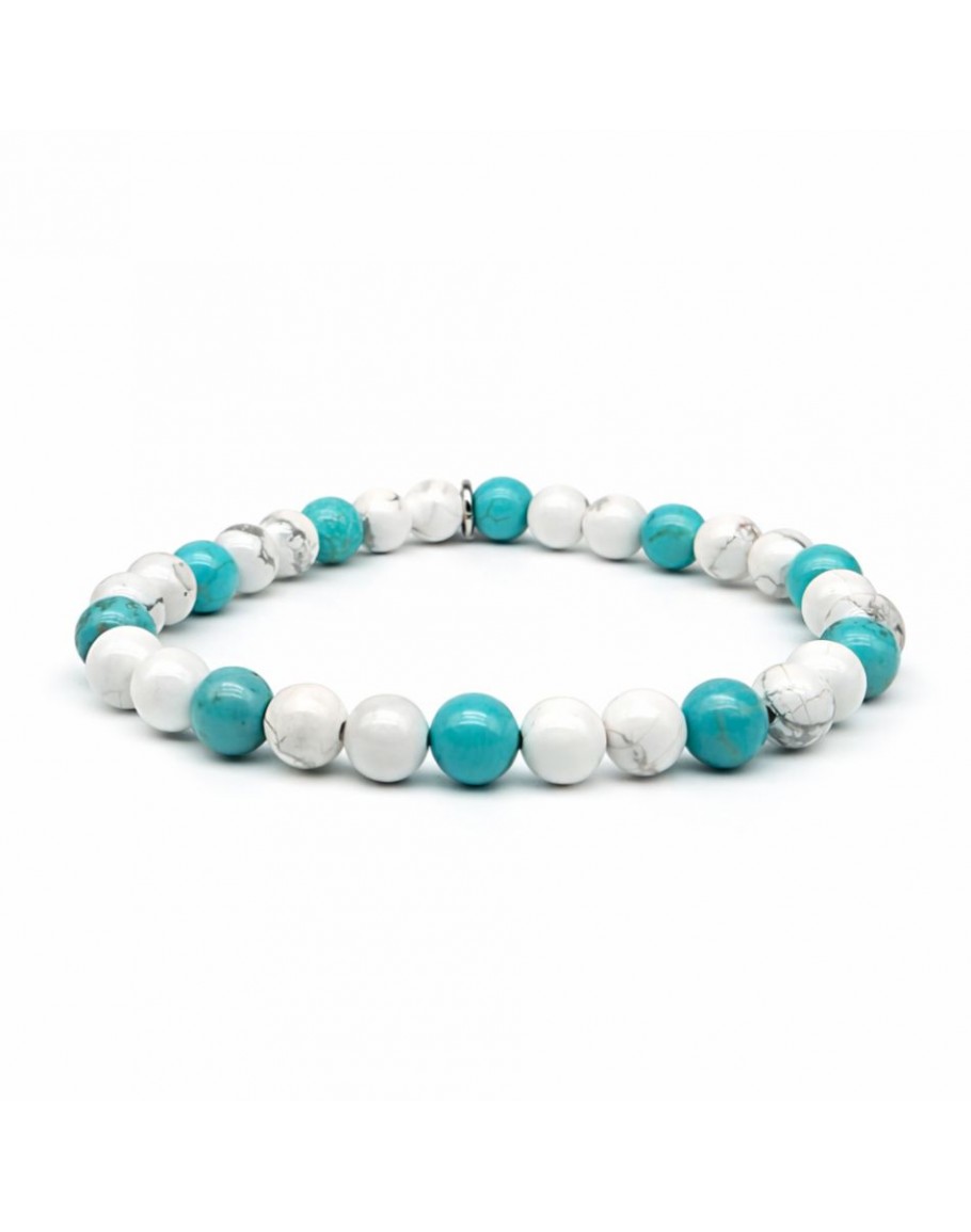Pulsera estriada de Aulita y Turquesa, Brillante, Pura, el efecto cromático de las piedras, el veteado natural de las piedras, el elegante efecto estético en la muñeca.