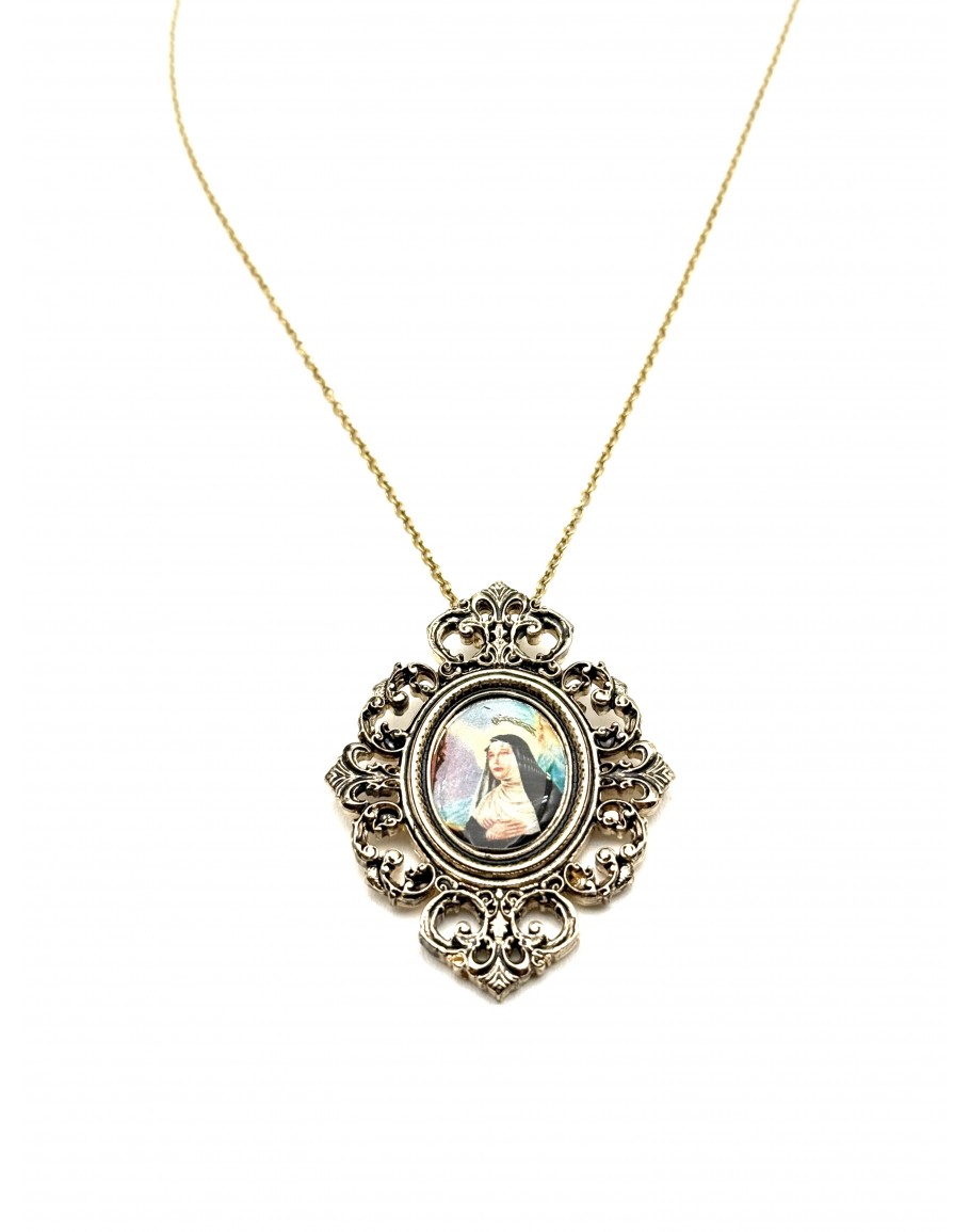 Cadena de acero, colgante de zamak rodiado 750 con foto resina.