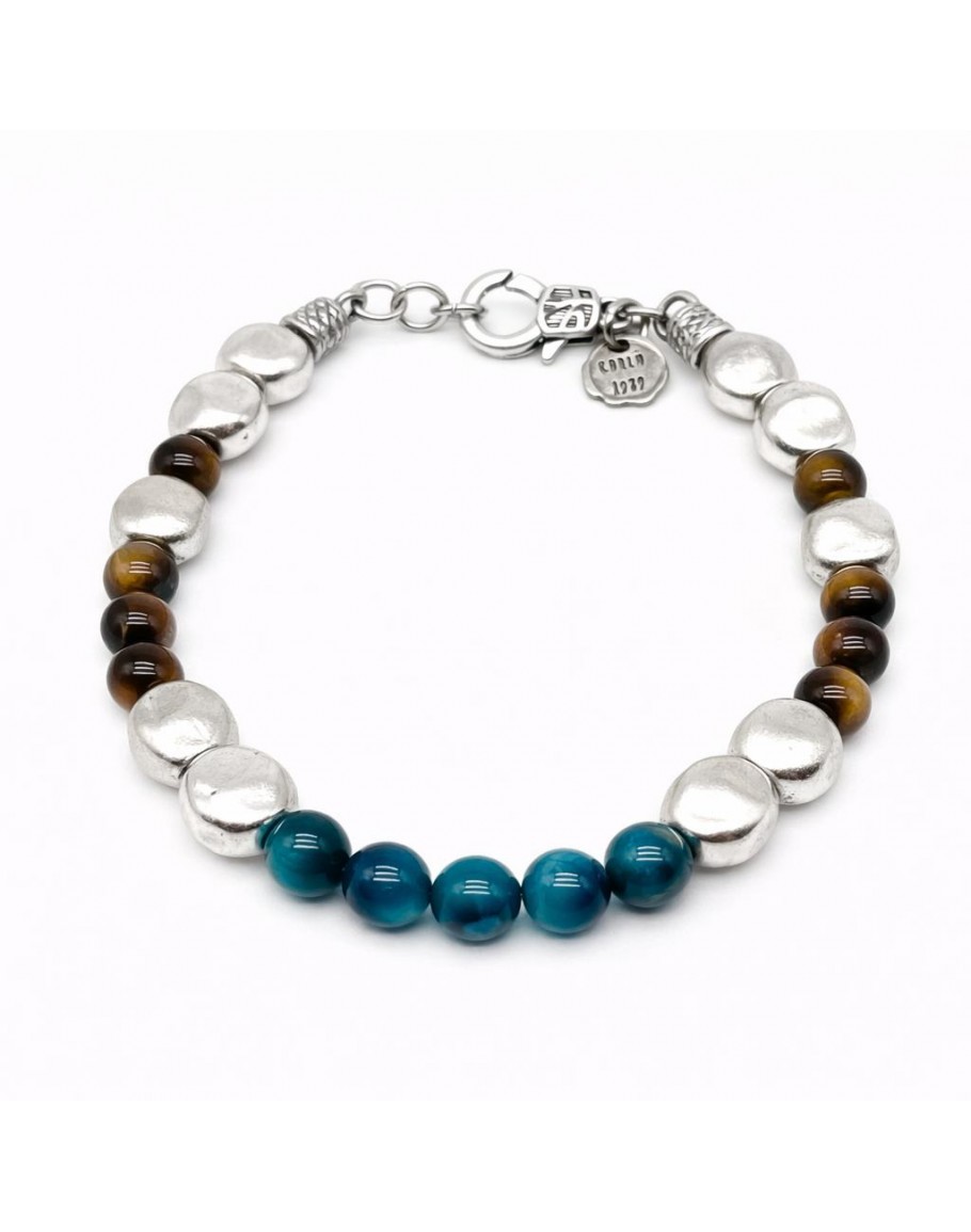 BRACELET ISLAND Original et sans artifice, tel est le résultat esthétique du bracelet Island. L'alternance de pépites d'argent Corlu'1979, d'oeil de tigre et de bleu clair crée un bracelet important et de caractère, rehaussé par le fermoir original Corlu'1979. A porter au poignet, il ne va pas de soi.