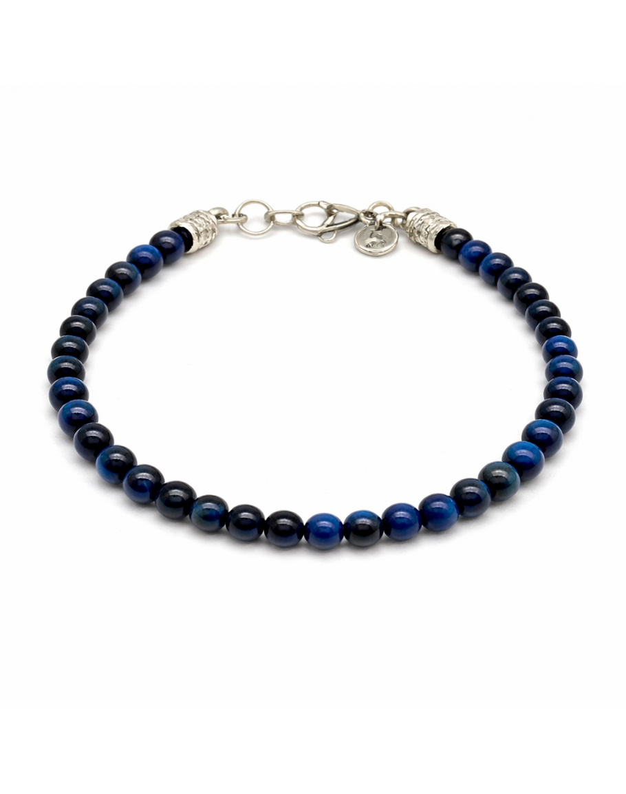 BRACELET EN OEIL DE TIGRE BLEU . Simple et lumineux est l'effet esthétique du bracelet. Il donne une sensation de positivité, de calme, porté au poignet. Particulières sont les douilles qui fixent le fermoir, pointillées et faites à la main.