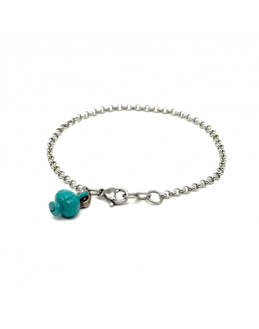 Bracelet PUMINO turquoise. La chaîne Steel Rolo' est enrichie d'un délicat Pumino Turquoise, symbole de bon présage, de prospérité. Fin et délicat à porter au poignet, à emporter avec soi à chaque instant de notre journée