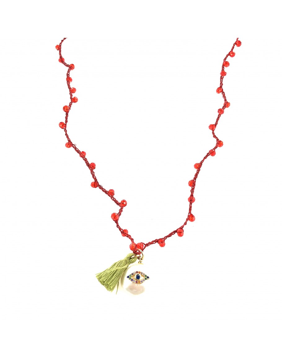 COLLIER LONG SWAROVSKI, Stylé, Doux, le fil Swarovski, agrémenté de deux pendentifs "MOTHER OF PEARL/EYE - TASSEL", le résultat esthétique autour du cou est sensuel.